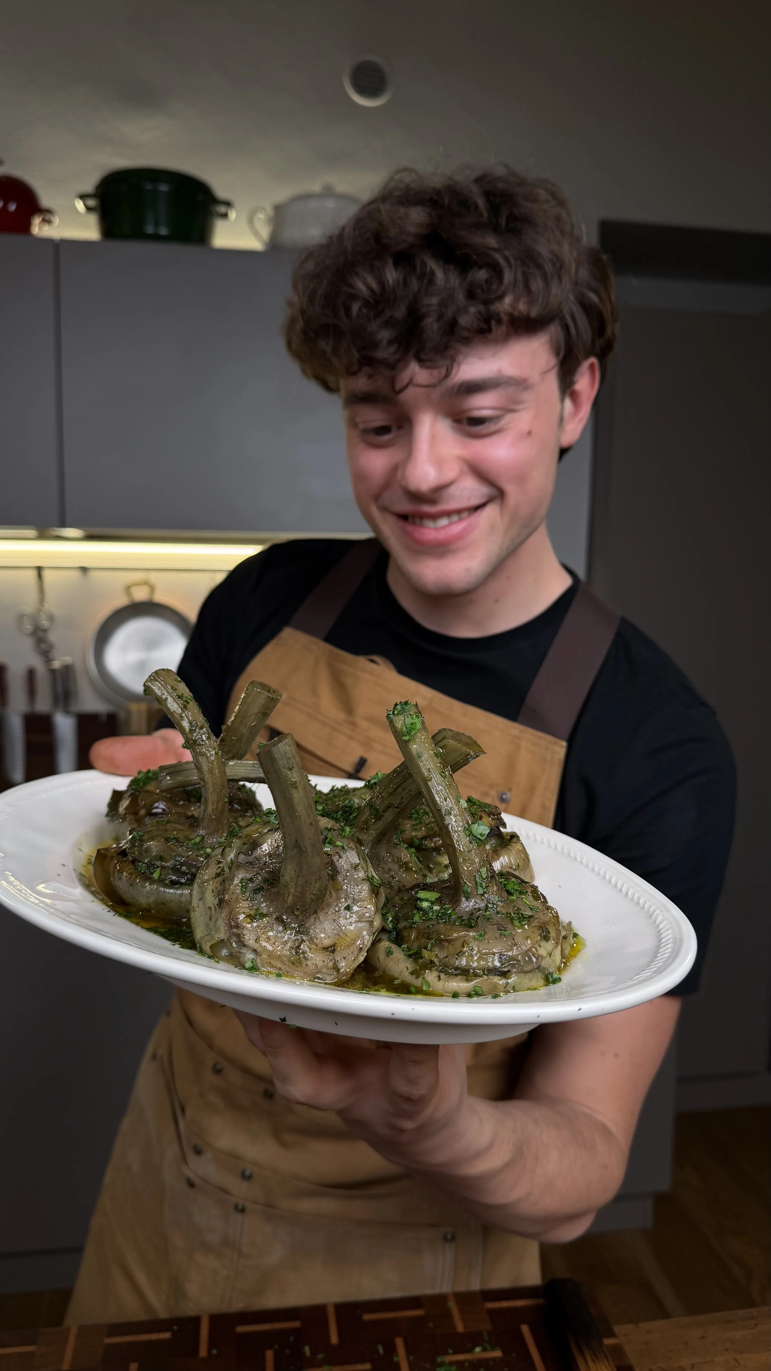 Devo dire che quando inizia la vera stagione dei carciofi romaneschi, sotto Pasqua, loro diventato il contorno di almeno due/tre pranzi o cene a settimana. Teneri, dolci, gustosissimi. La cosa bella e poetica di questi carciofi è che se non siete di Roma è molto difficile trovarli così, è come se fosse una ricetta custodita nella città e che per gustarli devi proprio andare in trattoria. Oltre il carciofo buono, le erbe giuste (mentuccia se la trovate) e tanto aglio, ci vuole un buon olio extra vergine d’oliva.